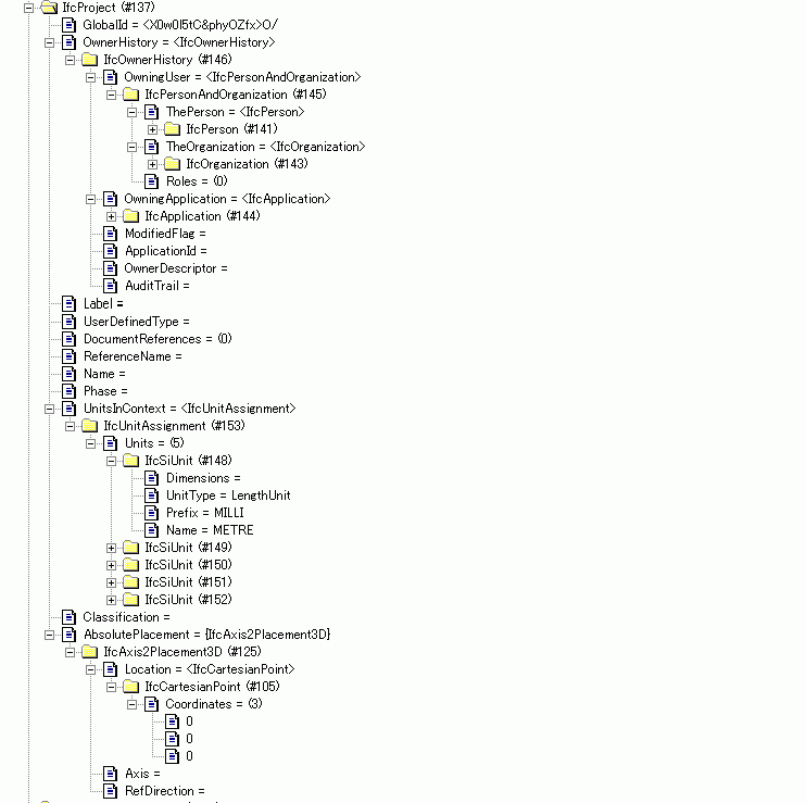 └IfcProject /ReferenceName,Name,Phase,UnitsInContext,Classification,AbsolutePlacement