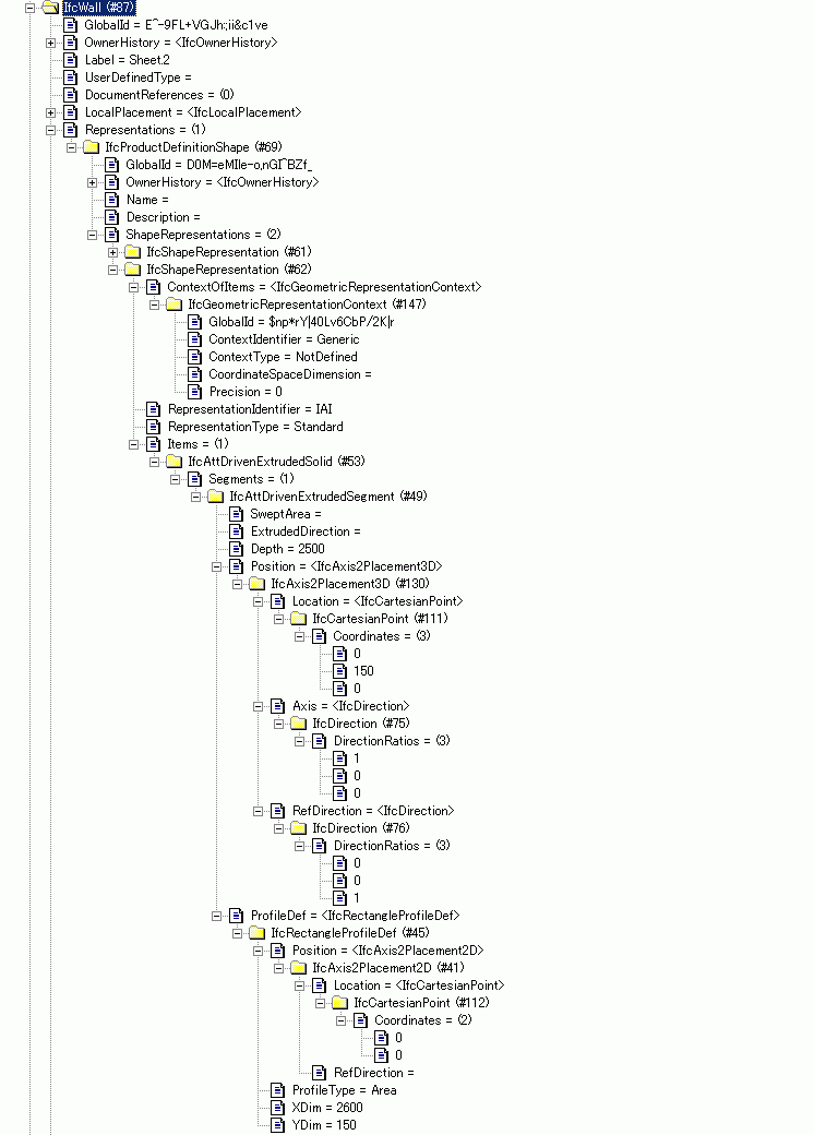 そこで今回、IFC対応ソフト(Microsofft VISIO 2002 IFC対応開発版)を使用してIFCデータを生成し、その内容を調査してみた。