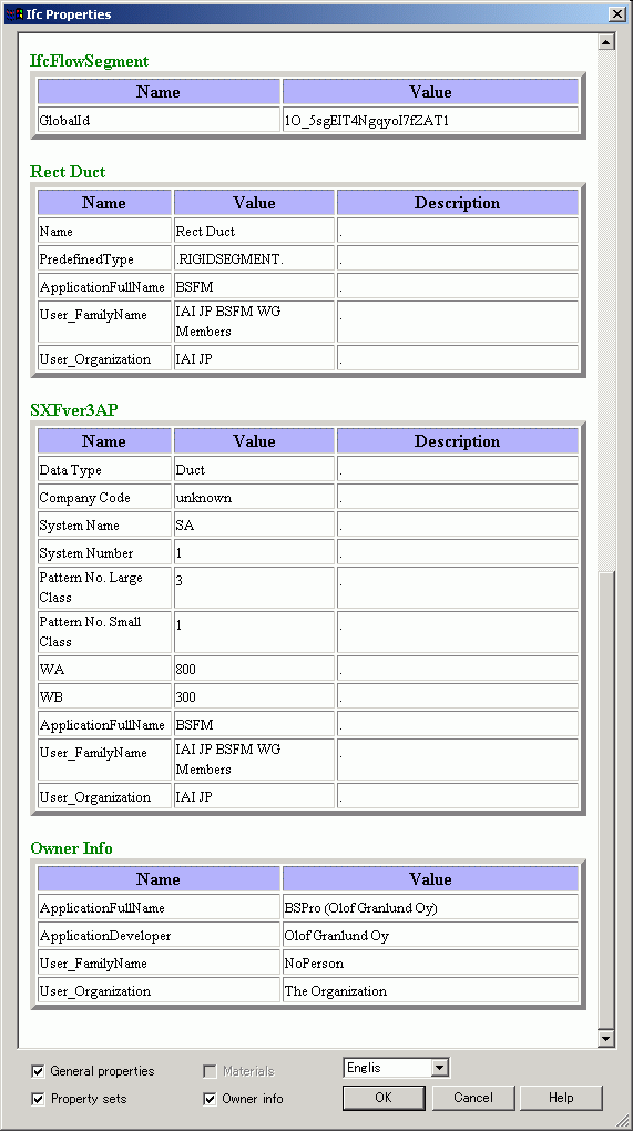 IFC2x用テストデータのダクト部材(直管)に属性を付加してみた。
