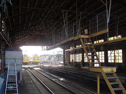 そして、一畑電車と言えば、うんすうふらた(雲州平田)、だなぁ。車庫の中までオジャマしちゃって、楽しかったなぁ。