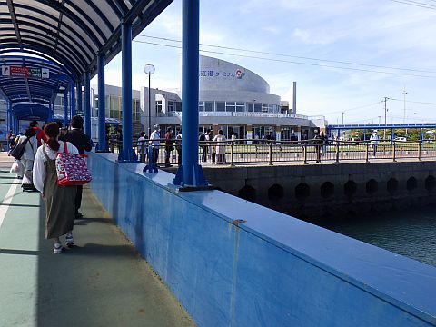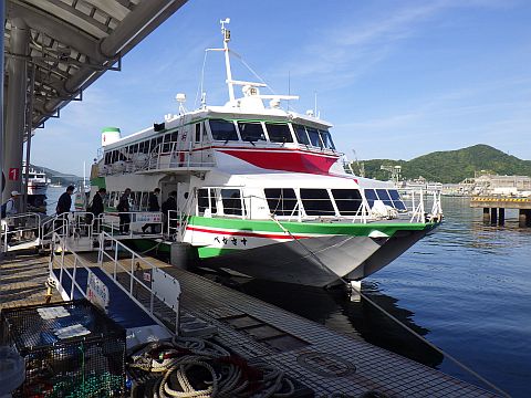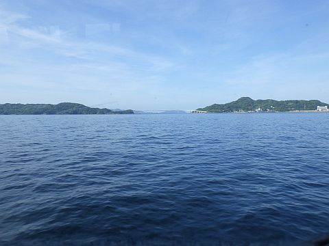 ジェットフォイルの速度は何と40ノット(74km/時)。軍艦より速い。でも、速いだけに、船内はシートベルト着用。つまり、ウロウロできない。ざんねーん。
