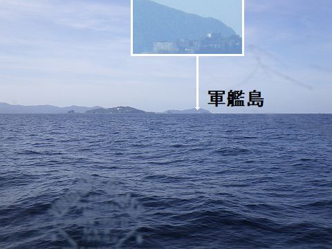 その先で、軍艦島。ってゆーか、ほとんど見えねー。やっぱり、また来るしかないか。