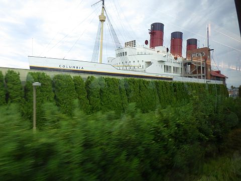 そして、ディズニーシーの豪華客船のS.S.コロンビア号の周りは海のはずだけど、裏側には並木。