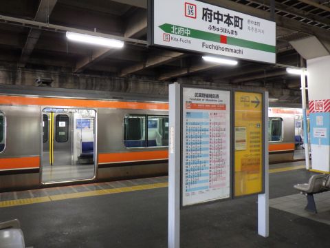写真 武蔵野線の駅構内と車両(2024年10月12日9時30分頃、府中本町駅にて)