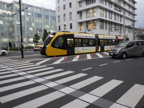 写真 宇都宮ライトレールの軌道と車両(2024年11月5日16時30分頃、宇都宮駅東口駅付近にて)