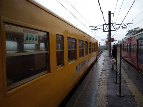 写真 日南線の駅構内と車両(2024年11月15日15時40分頃、子供の国駅にて)