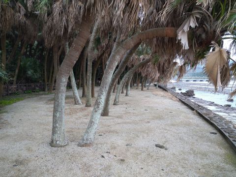 島はなぜか亜熱帯らしい。そのせいか、ヤシ(ビロウ)の木がたくさんあって、まるでハワイみたい。