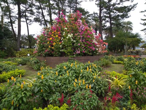 園内には、亜熱帯の植物がたくさん咲いている。宮崎空港の愛称に使われているブーゲンビリアも咲いている。