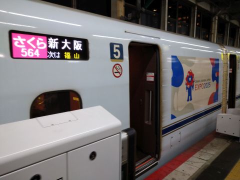 車両には、関西万博の宣伝が。もう来年か。入場券を買っておこうかな。