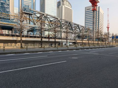 写真 JRの軌道と車両(2025年3月26日15時頃、品川駅〜北品川駅間にて)