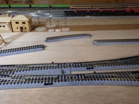 内線のS186の直線レールをS124に置き換えて、内線のお隣の留置線にS124の直線レール、さらにお隣の留置線にS62の直線レールを延ばして長さを調整して、さらにS248の直線レールを延ばして、
