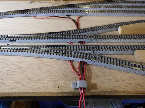 分岐側にS64の直線レールを延ばして、ポイントの配線をくぐらせて、