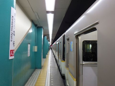 写真 近鉄奈良線の駅構内と車両(2025年5月29日7時10分頃、近鉄奈良駅にて)