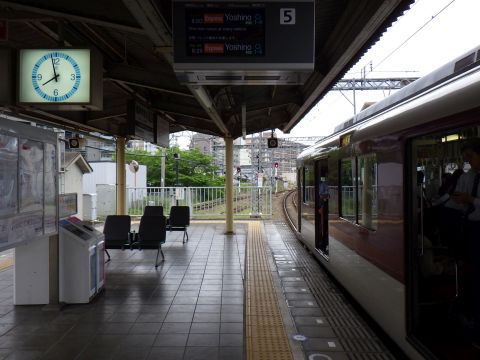 写真 近鉄橿原線の駅構内と車両(2025年5月29日7時20分頃、大和西大寺駅にて)