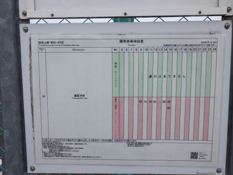 写真 バス時刻表(2025年5月29日8時20分頃、壺阪山駅にて)