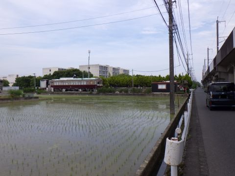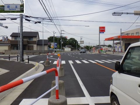 水路に沿って、北へ向かい、少し東に行ってから、また北へ向かうと、「埼玉{さきたま}」交差点に当たる。