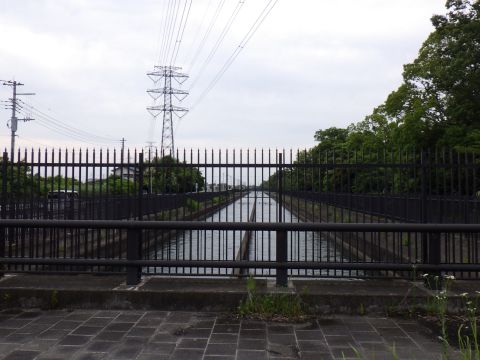 さらに進むと、立派な用水路に当たる。水量が多くて流れが速いので、落ちるとヤバそう。