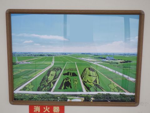 行田タワーのウリは、田んぼアートらしい。行田タワーを有名にした、「跳んで埼玉」のアートの写真もあった。