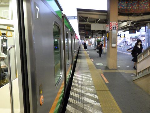 写真 高崎線の駅構内と車両(2025年6月7日19時頃、行田駅にて)