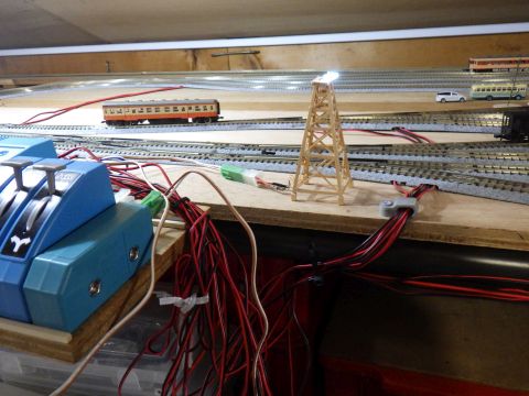 盆踊りやぐらを、それらしい場所へ移動して、配線を線路にくぐらして、完成。