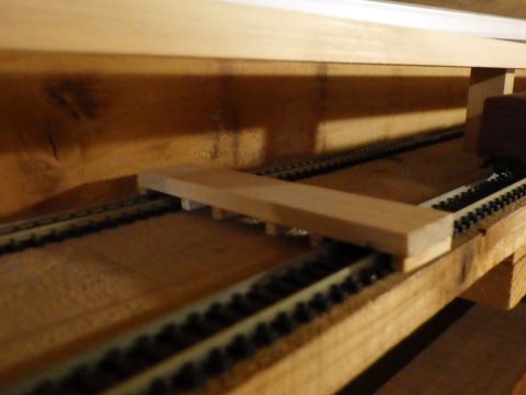 ガイドが小さくなったので、扱い易くなった。あと、線路を両側から挟むので、線路を固定し易くなった。