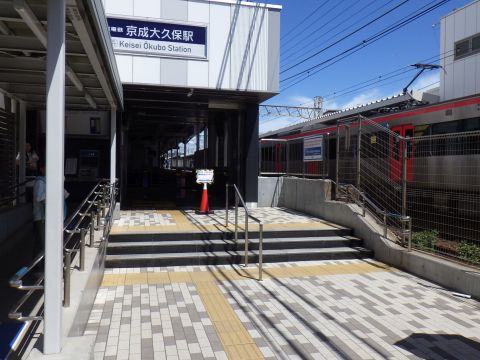 写真 京成本線の駅構内と車両(2025年7月20日13時30分頃、京成大久保駅にて)