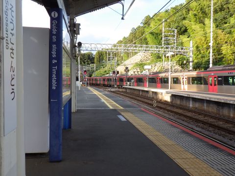 写真 京成本線の駅構内と車両(2025年7月20日18時10分頃、宗吾参道駅にて)