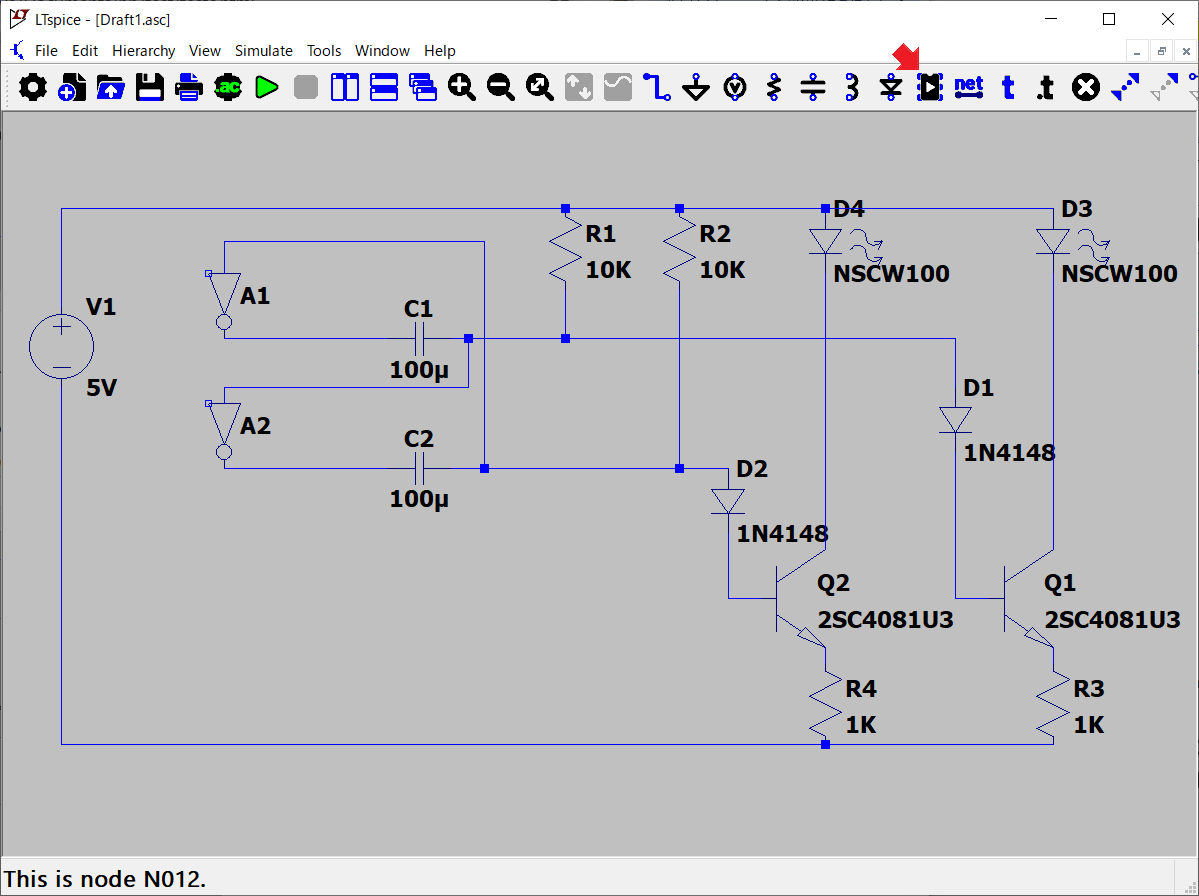 使い方は、実物と同じで、部品を置いて、配線をつないで、回路を作る。