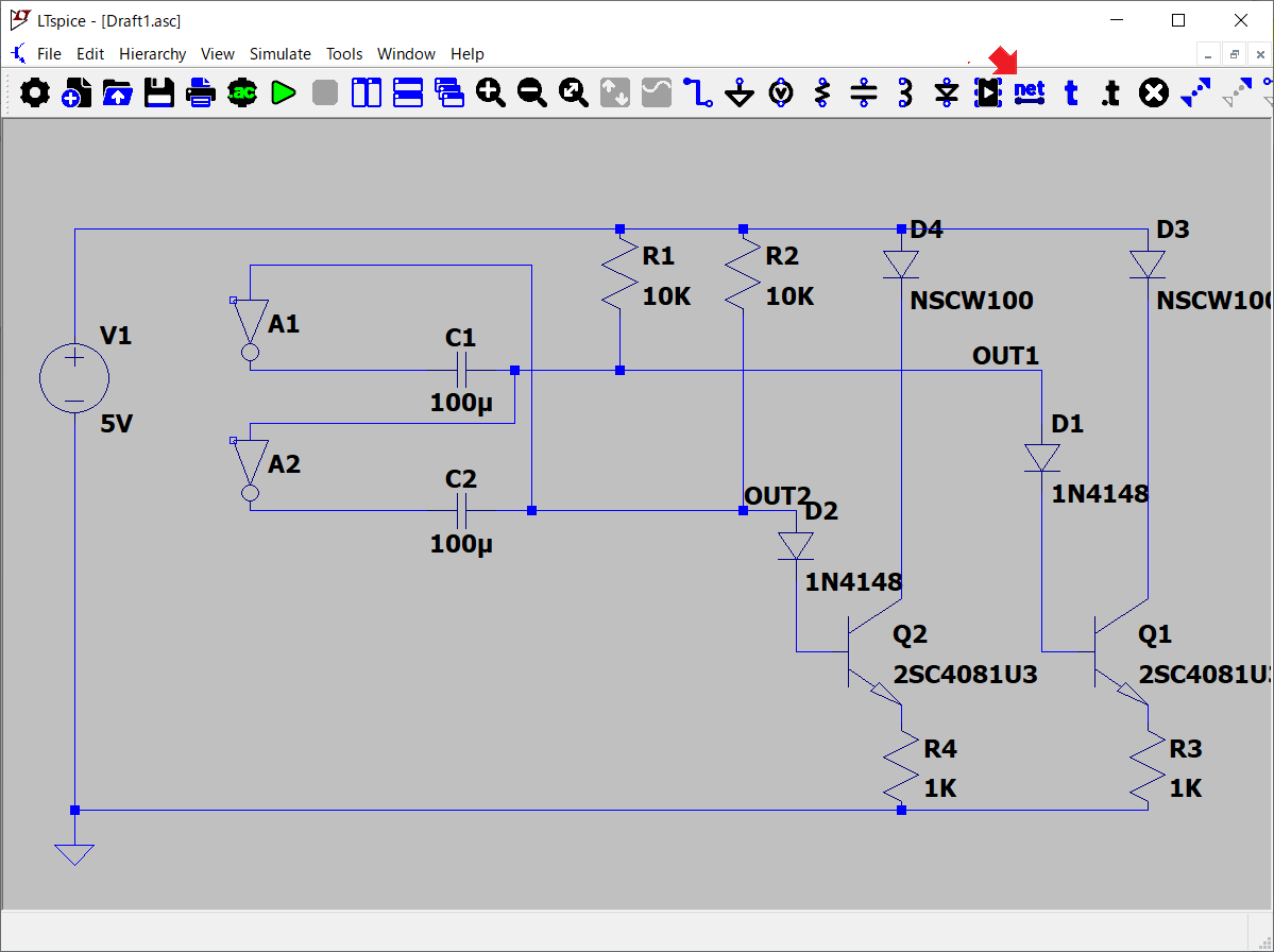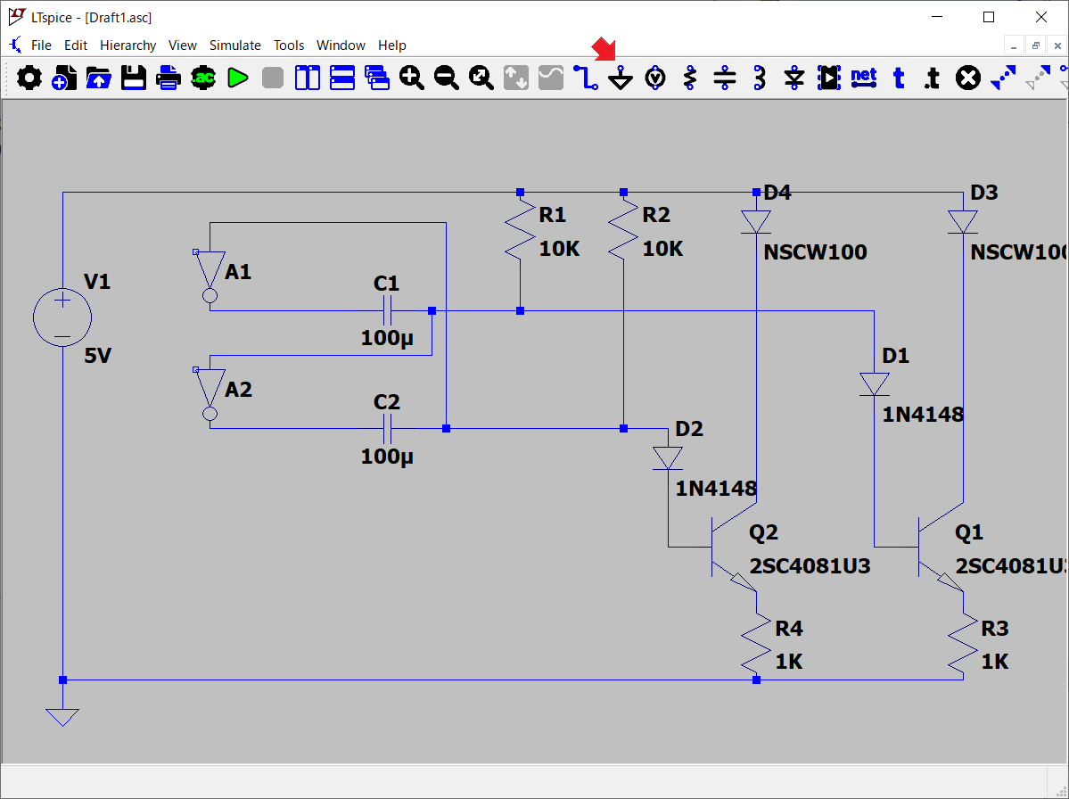 って、そーだ。LTspiceに附属している、サンプルの回路と見比べれば、何か分かるかも。