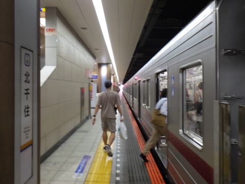 写真 東武伊勢崎線の駅構内と車両(2025年8月3日15時30分頃、北千住駅にて)