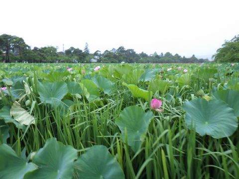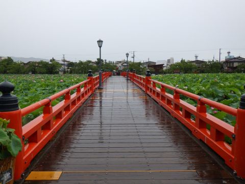 立派な商店街を抜けて、南東へ少し進むと、高田城の立派な外堀がある。外堀にはハスが群生していて、これまたスゲー。