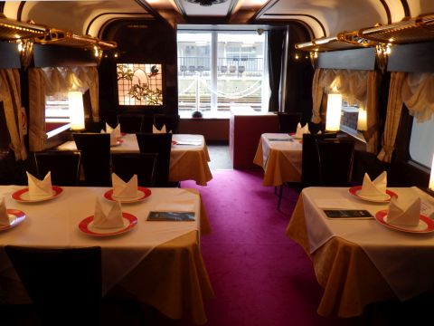 実物は知らないけど、こんな感じなのか。豪華だなぁ。ななつ星とか四季島とか瑞風{みずかぜ}とかも、こんな感じなのかなぁ。