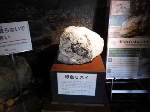写真 ヒスイ・鉱物群(2025年8月7日13時10分頃〜14時頃、フォッサマグナミュージアムにて)