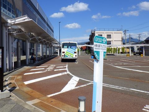 写真 頚城{くびき}自動車の停留所と車両(2025年8月7日14時20分頃、糸魚川駅にて)