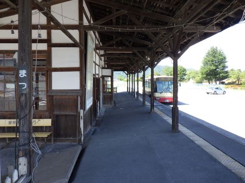屋代線が廃止されて10年以上経つけど、駅舎はバス停として使われているようだ。