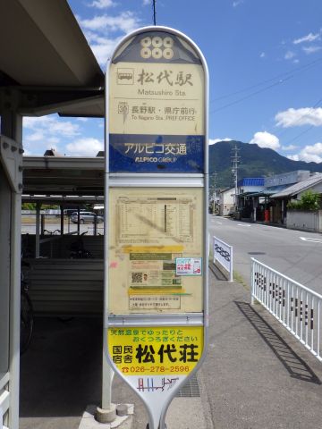 写真 アルピコ交通の停留所(2025年8月8日12時30分頃、松代駅にて)