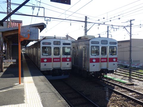 須坂は、大きな駅で、側線もあって、8500系(旧、東急8500系)が並んだ。