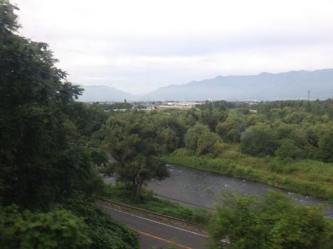 写真 篠ノ井線の車窓(2025年8月9日8時40分頃、松本駅〜明科駅間にて)