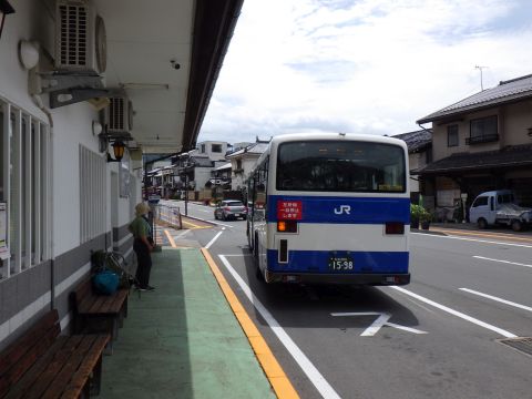 高遠駅のバス停は商店街の端にある。