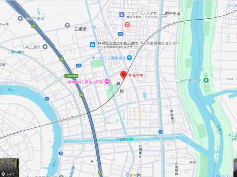 駅は、江戸川にも中川にも近い。川を見に行くのも楽しそうだけど、三郷放水路ってのが気になる。距離は0.7kmほど。