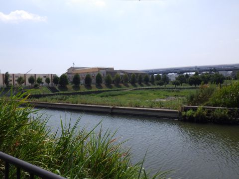 さらに進むと、三郷放水路。放水路に架かる橋から眺めると、