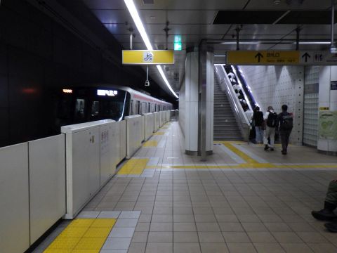 地上から3段のエスカレーターで改札階へ、さらに1段のエスカレーターでホームへ。ここも、大江戸線みたい。