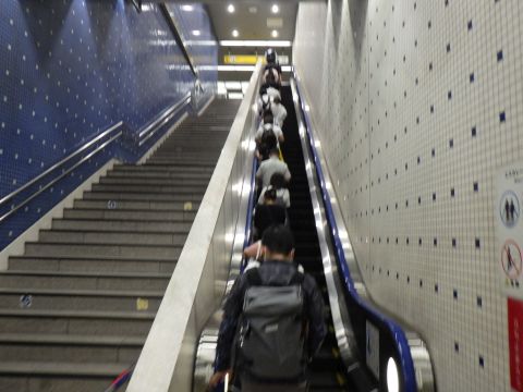 ホームから2段のエスカレーターで改札階へ、さらに2段のエスカレーターで地上へ。大江戸線みたい。