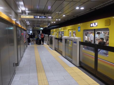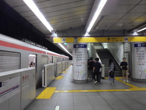 写真 東京メトロ銀座線の駅構内と車両(2025年8月23日15時頃、田原町駅にて)