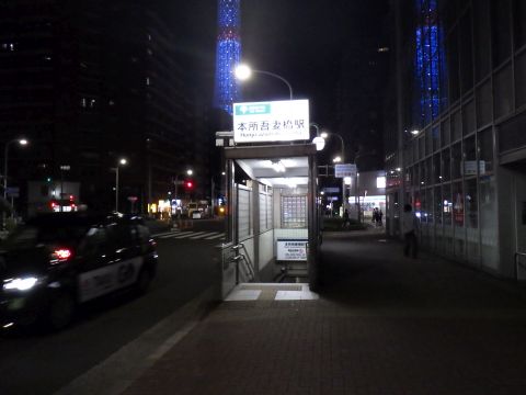 写真 都営浅草線の駅舎(2025年8月23日22時10分頃、本所吾妻橋駅にて)