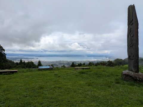 5分ほどで本丸に到着。標高300m。天気はよくないけど、七尾湾と能登島の眺めがステキ。
