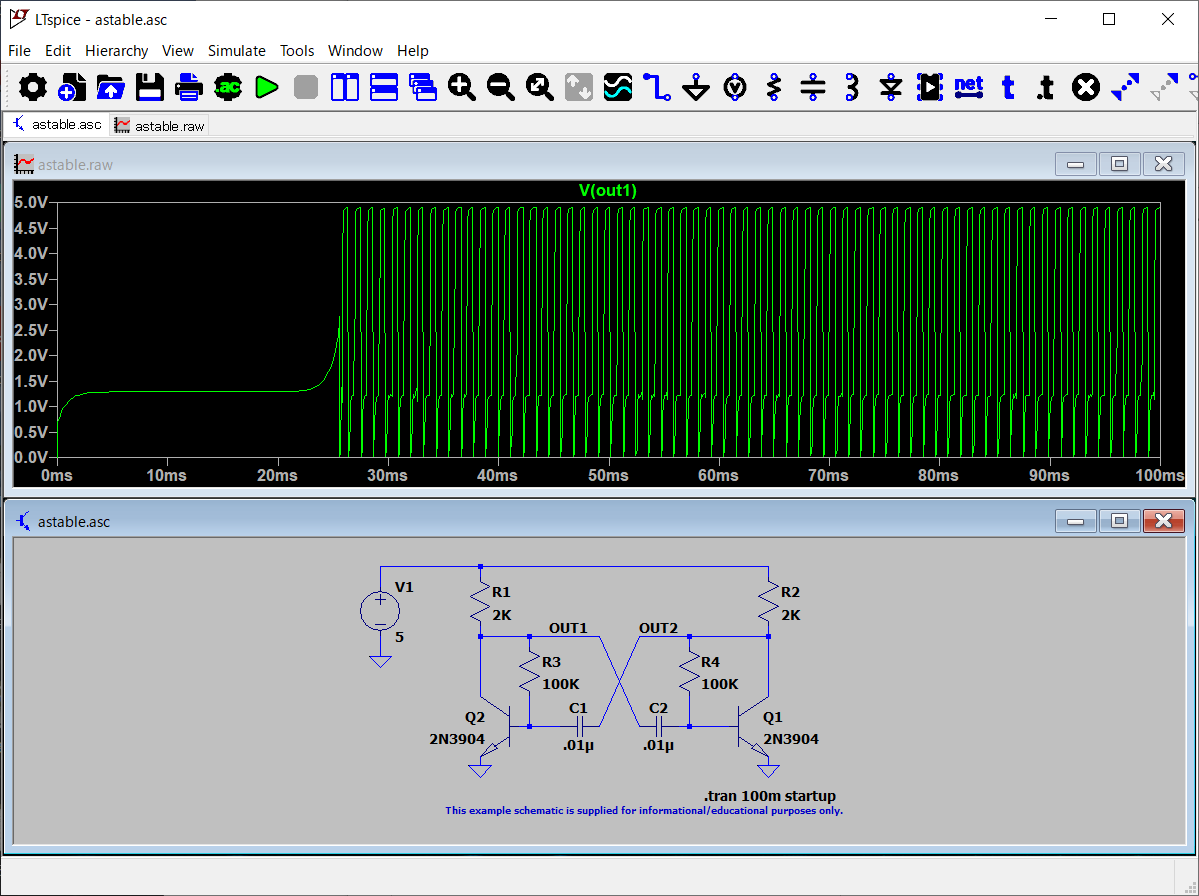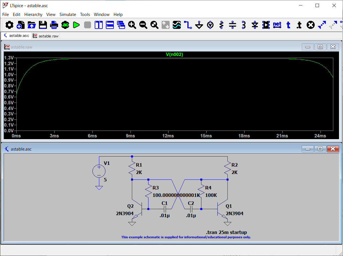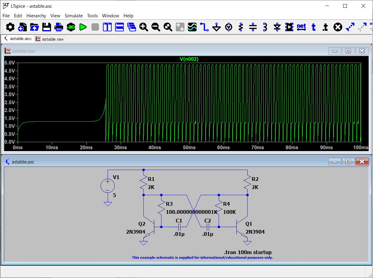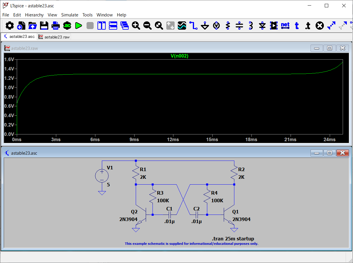 実物の抵抗だと、同じ抵抗値でもビミョーな差があるので発振するけど、理想の抵抗だと、同じ抵抗値では差がないので、発振しないと思ってた。LTscale、スゲー。