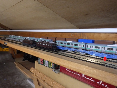 留置線は、引き上げ線と違って、新品のフレキシブルレールを使っているので、ワリとスムーズなのかも。