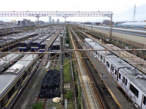 駅を出ると総武線の車両基地を跨ぐ長い陸橋がある。