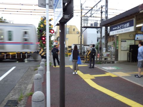 写真 京成電鉄の駅舎と車両(2025年9月19日17時10分頃、みどり台駅にて)